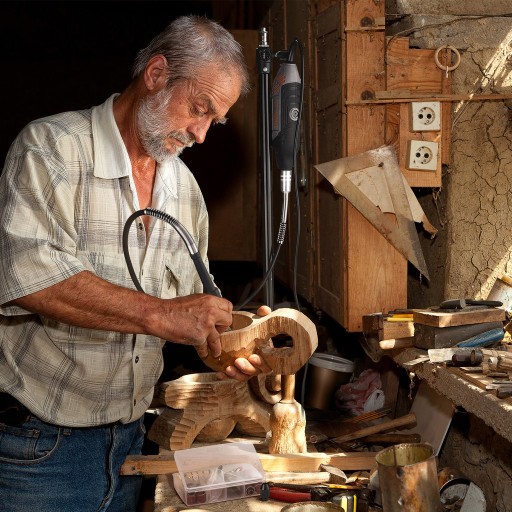 + szlifierka obrotowa nadaje się do formowania wzorów w drewnie, precyzyjnych prac przy obróbce powierzchni metalicznych, usuwania rdzy w trudno dostępnych miejscach, czyszczenia gwintów śrub lub innych zakrzywionych powierzchni