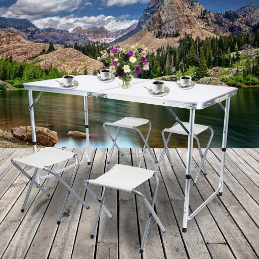 SKŁADANY STÓŁ KEMPINGOWY 120x60x70cm + 4 KRZESŁA