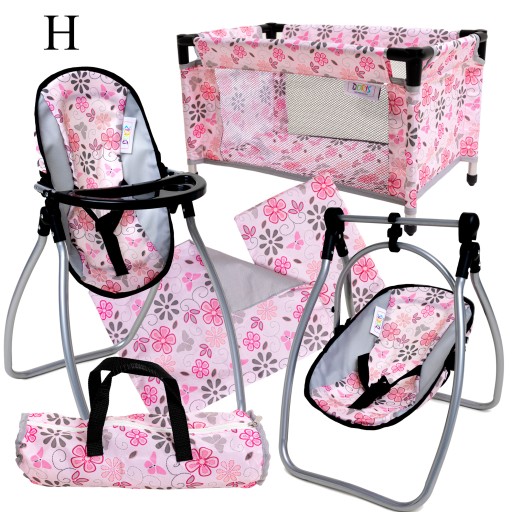 Zestaw marki DORIS, który bardzo realistycznie odzwierciedla prawdziwe łóżeczko turystyczne oraz krzesełko dla dziecka. Posiada wiele funkcji i możliwości różnorodnej zabawy.