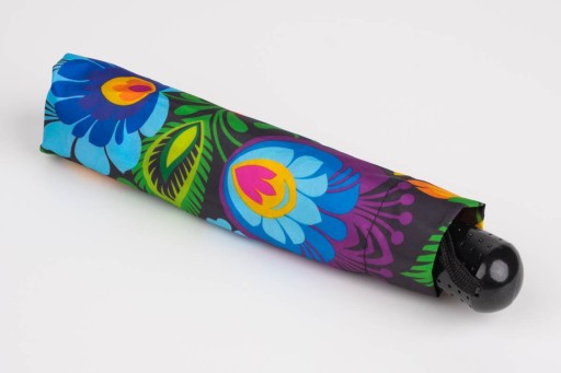 Parasolka mała automatyczna FOLKSTAR łowicka czarnaParasolka - mała - łowicka czarna Parasolka w łowickie wzory ludowe rozpromieni nawet najbardziej ponury dzień. Ochroni Cię przed deszczem i wiatrem. Jest wygodna - schowasz ją nawet do małej torebki. A idąc ulicą - uśmiech przechodniów gwarantowany. Łowicką parasolkę zdobią barwne kwiaty z łowickiej wycinanki na czarnym tle. Wzór ten inspirowany jest tradycyjnym wzorem ludowym z regionu łowickiego. Elementem przewodnim na łowickich wycinankach są koguty, pawie oraz motywy kwiatowe. Parasolka - mała - łowicka czarna: z nadrukowanym motywem łowickim na czarnym tle praktyczny folk dodatek dla każdej kobiety sprawdzi się podczas spaceru w pochmurny dzień jest wygodna - zmieści się do małej torebki idealna na prezent z naszym parasolem wyróżnisz się z tłumu ;)Cechy:Wzór: łowickiParasolka składanaWYMIARY: długość: 28,5 cm (po rozłożeniu 55 cm), średnica rączki: 3,5 cm, rozpiętość po rozłożeniu 108 cmMateriał: nylonCzasza parasola składa się z 8 połączonych ze sobą elementówPosiada automat służący do otwierania jak i zamykania parasolkiPosiada dodatkową zawieszkę do trzymania w ręku lub zawieszenia na haczykuPosiada tasiemkę z rzepem umożliwiającą spięcie parasolkiZapakowana w pokrowiec z tym samym wzoremZaprojektowana przez Folkstar w ŁowiczuParametry Szerokość: 3 Wysokość: 3.5 Głębokość: 28.5