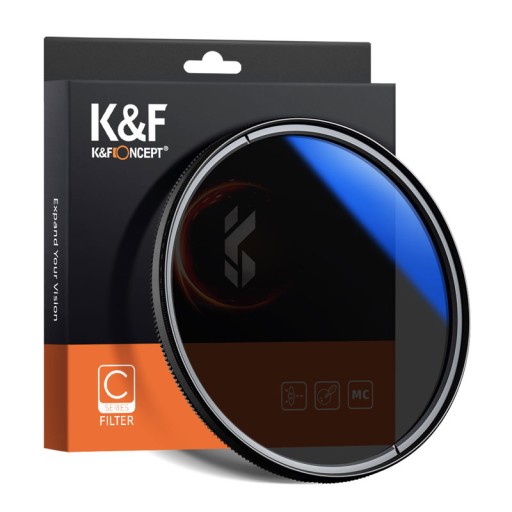 Wielopowłokowy filtr polaryzacyjny pomaga zredukować odblaski, filtrując światło spolaryzowane w wyniku odbicia od powierzchni niemetalicznej. Dodatkowo zwiększa nasycenia kolorów, szczególnie nieba i roślin. Filtr polaryzacyjny K&F Concept wykonany jest z japońskiego szkła optycznego i posiada wielowarstwową powłokę ograniczając powstawanie odblasków. Cienka, aluminiowa ramka filtra jest obracana, co umożliwia regulację stopnia polaryzacji i pozwala na stosowanie obiektywów szerokokątnych bez winietowania.