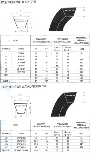 Dla lepszego zrozumienia, podajemy przeliczenia długości dla pasa o profilu A i wcześniej podanej długości. Pas o długości 870 Li będzie miał długość podziałową 900 LD oraz długość zewnętrzną 920 LA. Odpowiednio, Lp = Li + 30 mm; La = Li + 50 mm.
