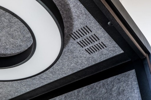 Nowoczesna wygłuszająca kabina akustyczna to absolutny hit w nowoczesnych wnętrzach biur typu open space, urzędów, lotnisk, hoteli. Kabina zapewnia możliwość prowadzenia rozmów telefonicznych lub telekonferencji w komfortowych warunkach w których można skupić się na rozmowie oraz prowadzić ją nie przeszkadzając współpracownikom. Przeszklone drzwi i tył kabiny sprawiają, że kabina wygląda niezwykle lekko i ozdabia wnętrze w którym się znajduje. Niewielka praktyczna budka telefoniczna sprawdzi się przede wszystkim w nowoczesnym biurze charakteryzującym się innowacyjnością i obieraniem nowoczesnych rozwiązań. Kabina została wykonana z wysokogatunkowych ekologicznych surowców zapewniających odpowiednie wygłuszenie, wzmocniona aluminiową ramą i drewnianymi bocznymi panelami. Wewnętrzny design i wykończenie zachęcają do korzystania z tego komfortowego miejsca zawsze gdy zajdzie taka potrzeba.