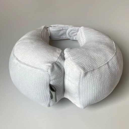 Pod szyją dziecka jak i z tyłu poduszka zapinana jest na magnesy. Kształt poduszki, która jest zupełnie płaska za szyją, pozwala zachować prawidłową pozycję dziecka, bez nienaturalnego wygięcia odcinka szyjnego kręgosłupa.