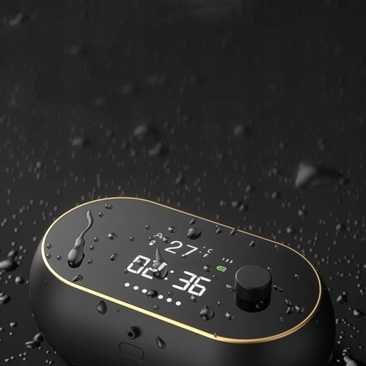 - Ludzkie ciało wyczuwa, że ludzie automatycznie włączają ekran, który może wyświetlać czas, temperaturę w pomieszczeniu, aktualny bieg, monit o niskim poziomie płynu, monit o brak zasilania i monit o pełną moc.