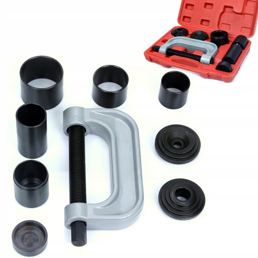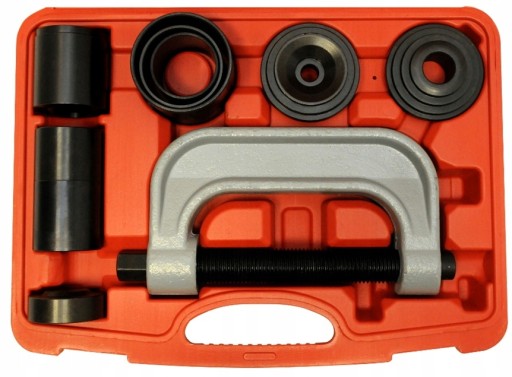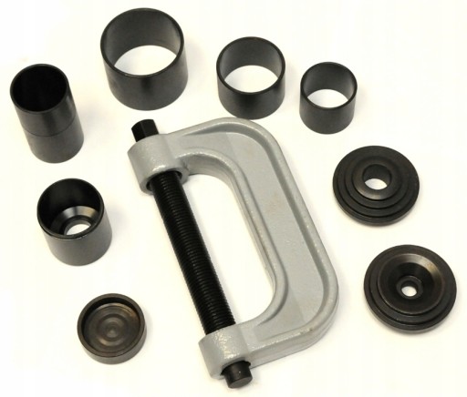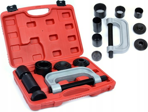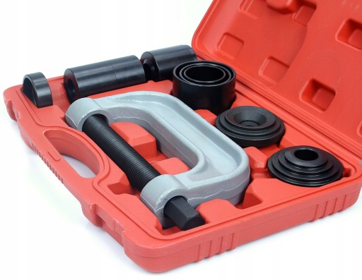 Przyrząd przeznaczony do montażu lub demontażu elementów wciskanych takich jak przeguby kulowe, sworznie szczęk hamulcowych, itp. Narzędzia wykonano z żeliwa i hartowanej stali węglowej Całość zestawu zapakowano w solidną walizkę z tworzywa sztucznego.