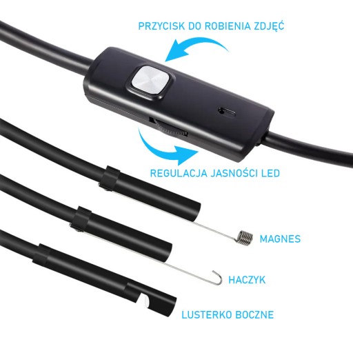 Nasz endoskop posiada własne oświetlenie w postaci 6 diod LED z płynną regulacją mocy świecenia za pomocą wygodnego pokrętła.