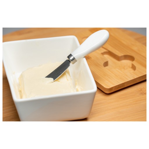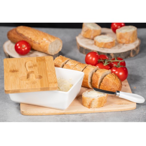 MASELNICA PORCELANOWA Z POKRYWKĄ BAMBUSOWĄ I NOŻYKIEM