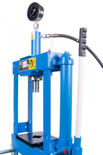 - prasa hydrauliczna o spawanej i solidnej konstrukcji do uniwersalnego zastosowania, z ręcznym sterowaniem jednostki hydraulicznej
