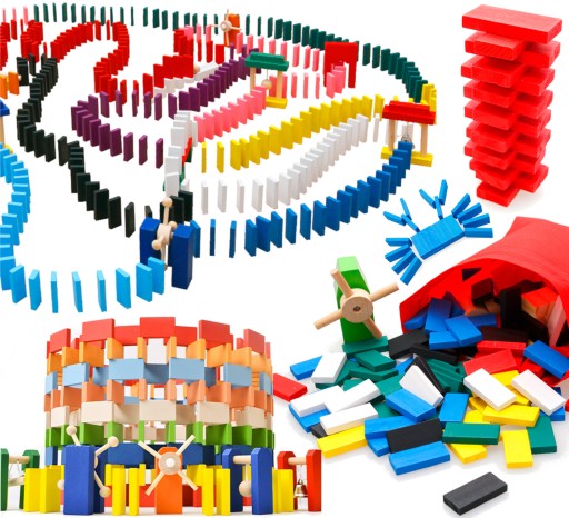 - Nauka przez zabawę - dla dzieci układanie domino może być świetnym sposobem na naukę różnych aspektów, takich jak matematyka (np. liczenie klocków), nauka o równowadze, siłach fizycznych czy związanych z geometrią.