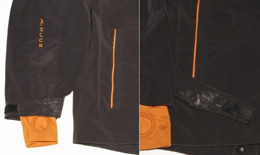 stan kurtki określam na 4 --- > używana, ma uszkodzony wizualnie rzep przy rękawie ( foto ), w dwóch miejscach "puściła" ozdobna pomarańczowa nitka (foto) na daszku widać sztywne zgrubienie materiału. Po za tym stan dobry, przed aukcją uprana w płynie do oczyszczania membran SportWash Atsko.