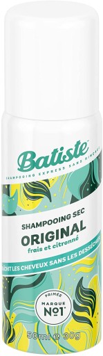Dry Shampoo - ORIGINAL marki Batiste. Suchy szampon do włosów. Jest doskonałym, szybkim i wygodnym rozwiązaniem zarówno w domu, jak i w podróży. Skutecznie oczyszcza pozbawione życia, nieświeże i matowe włosy zaledwie w 1 minutę! Pozostawia je pachnące, odświeżone i czyste od nasady aż po same końce. Absorbuje sebum i zanieczyszczenia oraz sprawia, że włosy stają się puszyste, jedwabiście miękkie i uniesione. Doskonale sprawdzi się w domu, podróży, szpitalu lub przed niezapowiedzianym wyjściem. Szampon jest idealnym rozwiązaniem do zastosowania np. pomiędzy myciami lub wtedy, kiedy nie mamy czasu na umycie włosów w tradycyjny sposób. Polecany zarówno dla kobiet, jak i mężczyzn.ORIGINAL - Czysty, świeży, lekko cytrusowy zapach.SPOSÓB UŻYCIA: Mocno wstrząsnąć i rozpylić u nasady włosów z odległości ok 30 cm. Przez kilkanaście sekund wmasować produkt we włosy, aż do całkowitego zniknięcia neutralizującej sebum skrobi. Rozczesać włosy i ułożyć jak zwykle.