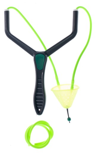 X-SERIES to wyczynowa proca w małym rozmiarze z małym koszyczkiem do precyzyjnego nęcenia robakami ziarnem lub lużną zanętą. W komplecie zapasowe gumki.