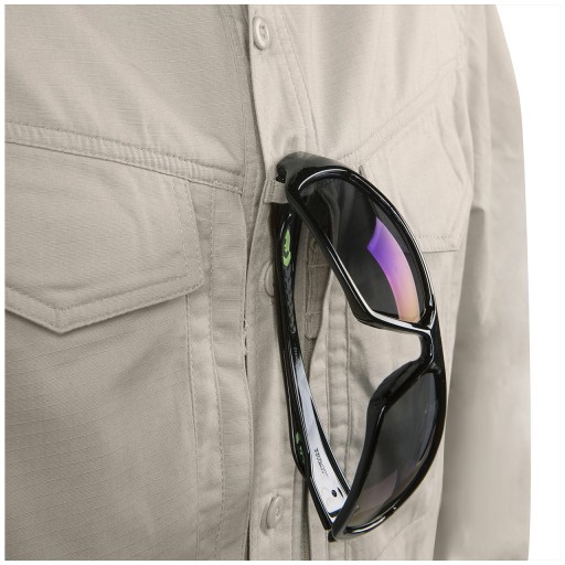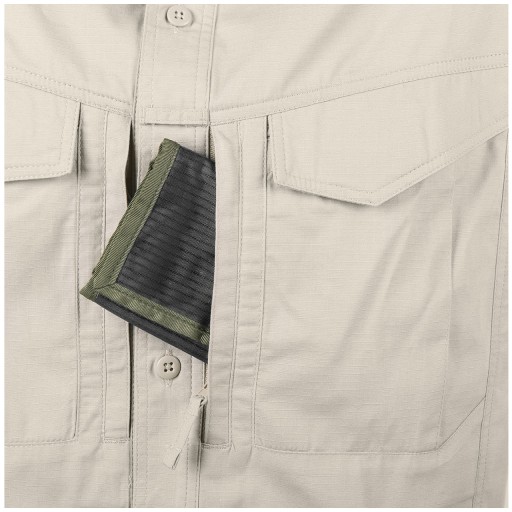 Koszula zaprojektowana została przede wszystkim dla funkcjonariuszy i osób aktywnych, ceniących estetykę oraz wysoką funkcjonalność. Jej dość luźny krój doskonale współgra z anatomią ruchów, niskoprofilową kamizelką balistyczną czy kaburą IWB. Niewielkie usztywnienie w przedniej części pod kołnierzykiem zapobiega jego rolowaniu się. Więc nawet podczas intensywnych zajęć będzie wyglądać elegancko. Na listwie guzikowej została wszyta niewielka szlufka, na której można wygodnie zawiesić okulary.