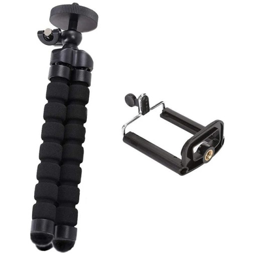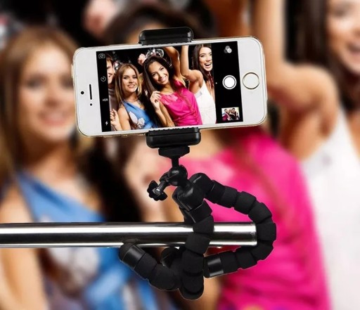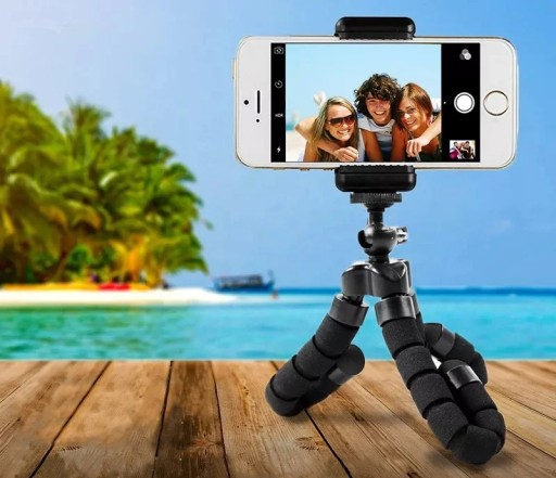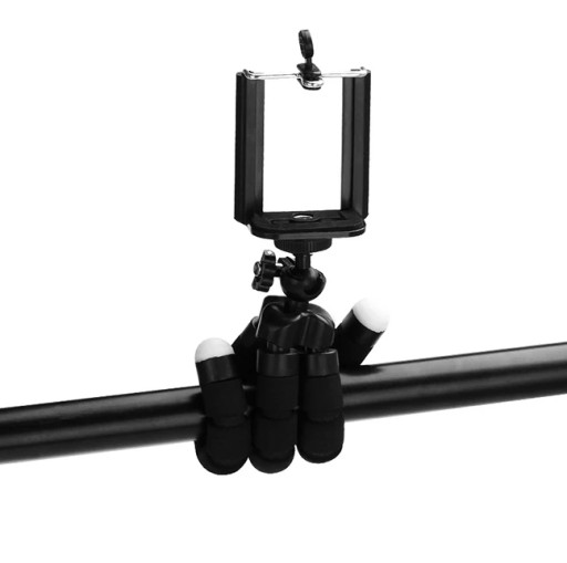 Uniwersalny bardzo elastyczny uchwyt - statyw na telefon komórkowy lub aparat fotograficzny. Dzięki swoim giętkim, a zarazem sztywnym nogom można go stabilnie zamocować, praktycznie na każdym elemencie otoczenia.