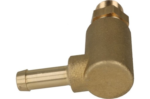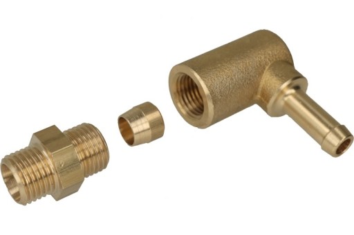 Kompletna złączka do podłączenia igielitowej dyszy przedłużanej, z możliwością podłączenia gumowego przewodu gazowego o średnicy 6 milimetrów pod kątem 90 stopni do otworu w kolektorze ssącym.W komplecie nypel do wkręcenia w kolektor ssący z gwintem M10x1 milimetr, pierścień zaciskający przewód igielitowy oraz kolano do podłączenia gumowego przewodu gazowego.