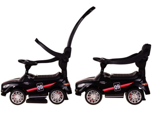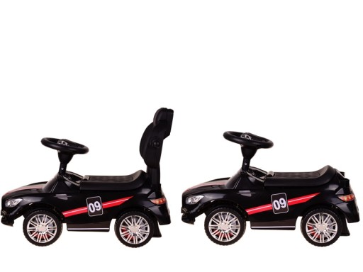 Kierownica na której znajdują się muzyczne przyciski zaciekawi nawet najbardziej wymagające dziecko, schowek umiejscowiony pod siedzeniem umożliwi naszemu maluchowi zabranie ze sobą swoje ulubionych skarbów bez konieczności noszenia ich przez rodziców.
