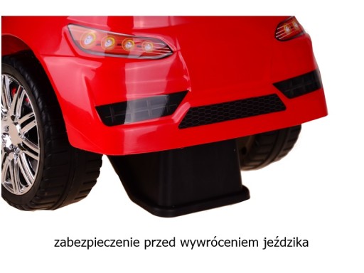 Jeździk został wykonany z twardego i mocnego plastiku , jest w 100% bezpieczny dzięki zabezpieczeniu przeciw wywrotce umieszczonej z tyłu autka.