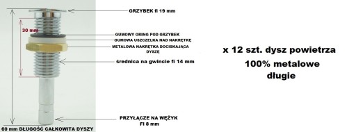 2. Dysze powietrzne 100% metalowe, z nakrętką i uszczelką oraz oringiem, przyłącze proste x 12 szt.