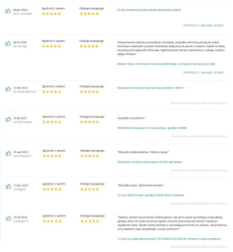 - Posiadamy 100 % pozytywnych opinii od naszych Kupujących...a poniżej przedstawionych jest kilku zadowolonych naszych Klientów, którzy już zakupili u nas dany zestaw do masażu z pompą i dyszami: