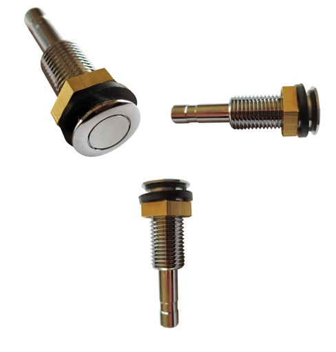 Przycisk pneumatyczny MOSIĘŻNY, nie plastikowy, nie wykruszy się po połowie sezonu użytkowania na zewnątrz. Dzięki niemu, możemy włączać/wyłączać pompę w tani i prosty sposób. Przycisk ma na wyposażeniu metalową nakrętkę i uszczelkę