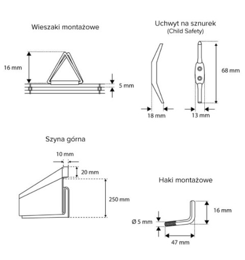 - 1x uchwyt zabezpieczający sznurek przed dziećmi