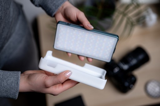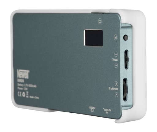 Lampa LED Newell RGB-W Rangha to "must have" w torbie każdego vlogera, filmowca lub fotografa. Duża moc zamknięta w kompaktowej obudowie sprawia, że z powodzeniem wykorzystasz ją do doświetlenia planu filmowego, a także w fotografii produktowej, ulicznej lub makro. Jej największym atutem jest pełny zakres wsparcia dla kolorów RBG oraz możliwość płynnej zmiany nasycenia, mocy oraz temperatury barwowej. Dzięki zastosowaniu wyjścia USB, wyposażone w pojemny akumulator urządzenie może też pełnić funkcję power banku.