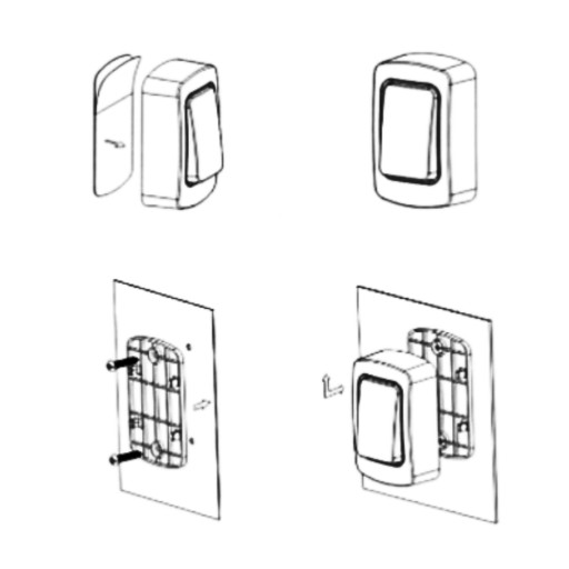 4. Łatwy montaż: Brak kabli, wiercenia i skomplikowanych instalacji. Przymocuj przycisk nadajnika za pomocą mocnej taśmy dwustronnej lub użyj dołączonych śrub mocujących dla większej trwałości. Odbiornik wystarczy podłączyć do zwykłego gniazdka elektrycznego.