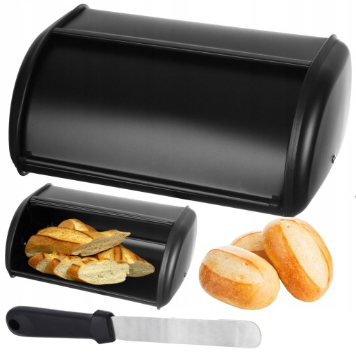 ХЛЕБОПЕКАРЬ МЕТАЛЛИЧЕСКИЙ КОНТЕЙНЕР ДЛЯ ХЛЕБА ЧЕРНЫЙ + БЕСПЛАТНАЯ ШПАТЕЛЯ