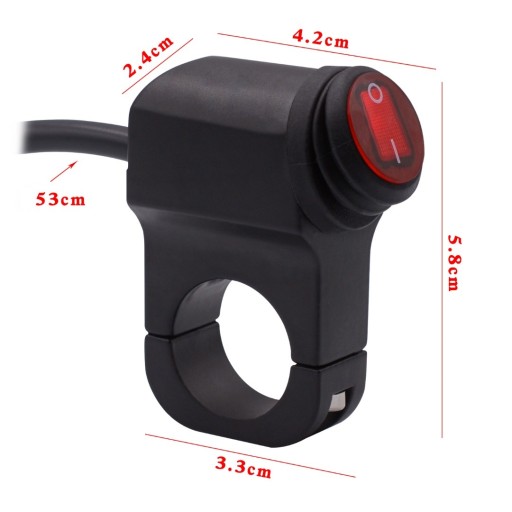 Przełącznik ON/OFF montowany do kierownicy. Jest to uniwersalny przełącznik pasujący do motocykli, krossów, quadów i innych pojazdów.