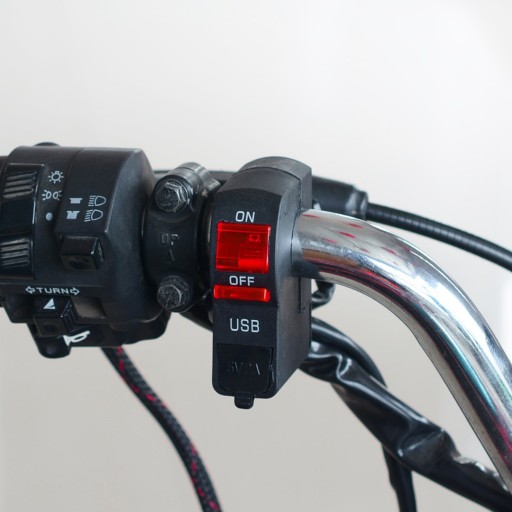 MOTOCYKLOWY PRZEŁĄCZNIK WŁĄCZNIK Z GNIAZDEM USB MONTOWANY NA KIEROWNICE FABRCZYNIE NOWY PODŚWIETLANY
