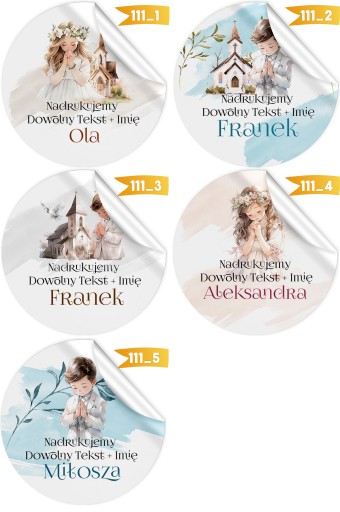 Ładnie prezentują się na kopertach z zaproszeniami na Komunię. Możesz je również nakleić na serwowane w czasie przyjęcia słodkości (na lizaki czy woreczki lub pudełka z przekąskami).