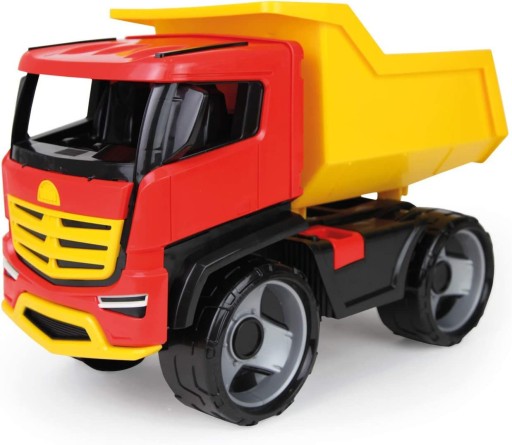Pojazd Wywrotka Tytan 51 cm w pudełku Plastikowy samochód z wysuniętym nadwoziem do ciężkich ładunków o maksymalnym obciążeniu statycznym 100 kg. Korpus można zabezpieczyć przed niepożądanym kołysaniem.