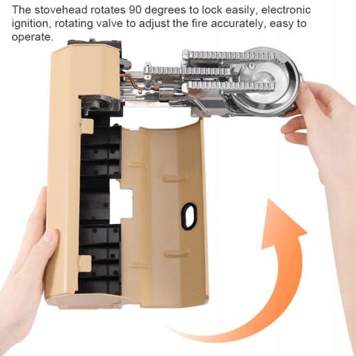Głowica kuchenna obraca się o 90 stopni, aby łatwo zablokować, elektroniczny zapłon, obrotowy zawór do dokładnej regulacji ognia, łatwy w obsłudze.