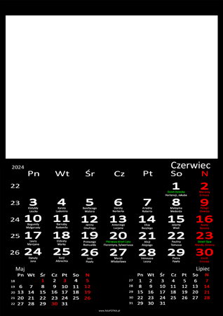 - Zaznaczone wszystkie święta.