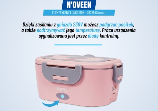 Dzięki zasilaniu z gniazda 230V możesz podgrzać posiłek, a także podtrzymywać jego temperaturę. Praca urządzenia sygnalizowana jest przez diodę kontrolną.