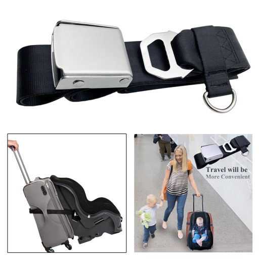 [ ]: Ten pasek bagażowy do fotelika samochodowego przekształca Twoją walizkę na kółkach w przenośną walizkę, pasującą do wszystkich fotelików samochodowych z górnymi paskami mocującymi.
