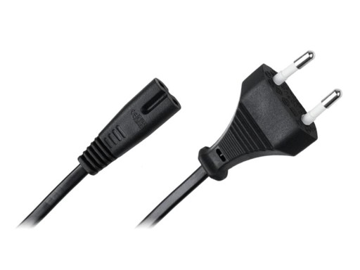Kabel zasilający o długości 1,8m z wtykiem typu bałwanek/ósemka stosowany do podłączenia odbiorników TV-SAT, radia, odtwarzaczy DVD, video itp.