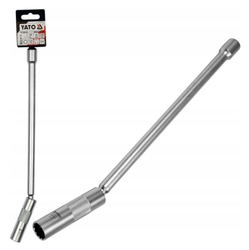 Wysokiej jakości cienkościenny klucz z przedłużką i przegubem przeznaczony do montażu i demontażu świec zapłonowych.