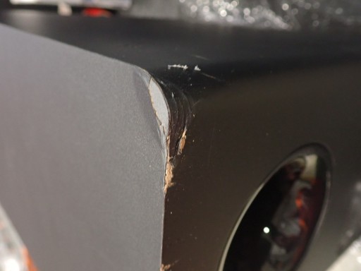 Stan produktu: Towar uszkodzony - widoczne uszkodzenia obudowy subwoofera poobijane rogi, po naprawie obudowy soundbara