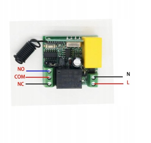 Do wykorzystania mamy 1 kanał o styku przełącznym (Com, No, Nc).