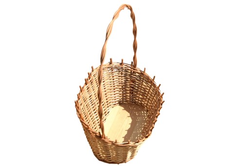 Koszyk z naturalnej wikliny: na kwiaty, prezent duży - kosz wykonany jest z naturalnej wikliny, dno kosza stanowi płyta - co czyni koszyk bardziej wytrzymałym i trwalszym. Staranne wykonanie kosza gwarantuje eksponowanie jego zawartości - powszechnie wykorzystywany w kwiaciarniach do eksponowania kwiatów i nie tylko.