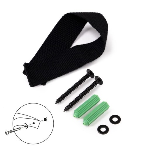 W zestawie znajduje się specjalna taśma oraz wkręty, którymi możesz przymocować regał do ściany. Jest to szczególnie ważne gdy posiadasz małe dzieci, dzięki zabezpieczeniu nie musisz martwić się o ich bezpieczeństwo.