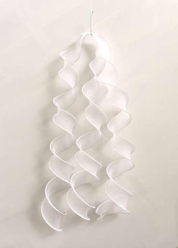 Uniwersalne spiralki do wianka komunijnego wykonane z organzy, wykończone dekoracyjnym przeszyciem w którym jest wszyta żyłka. Żyłka powoduje piękne skręcanie się organzy nadając niepowtarzalny efekt.