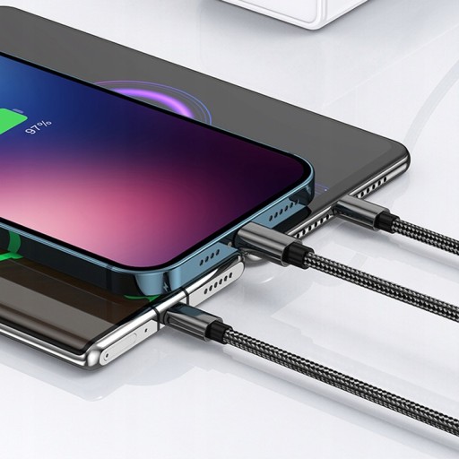 KABEL 3w1 Z KOŃCÓWKĄ DO IPHONE/ MICRO USB/ TYP-C