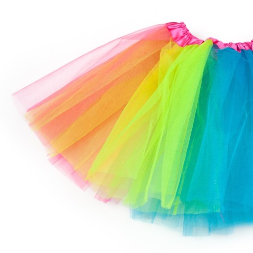 Pięknie kolorowa, tiulowa tutu składająca się z luźno wszytych kolorowych pasów tiulu. Klasyczna, taneczna TUTU bez podszewki krępującej ruchy. Polecamy do rajstopek lub legginsów.