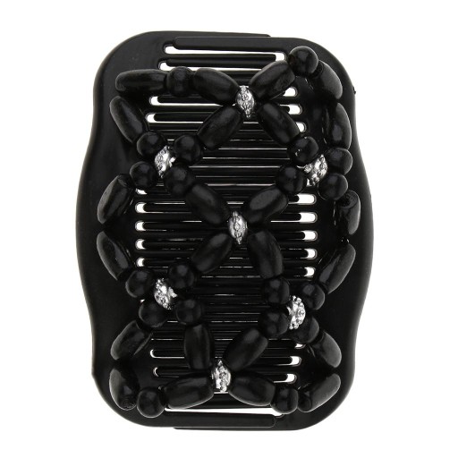 2 Pieces Elastic Double Hair Comb Wooden Bead Easy Hair Clips Hair Jewelry