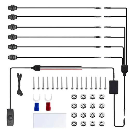 5. Łatwa instalacja: wystarczy zeskanować kod QR na skrzynce sterującej, aby pobrać aplikację i ułatwić instalację. Połącz się z urządzeniami kompatybilnymi z Bluetooth i z łatwością dostosuj efekty świetlne w rytmicznej atmosferze. Dołączona jest szczegółowa instrukcja montażu. Uwaga: Przed podłączeniem do zasilania zaleca się połączenie wszystkich 8 lamp skalnych razem, aby uniknąć uszkodzenia kasetonów przez wysoki prąd. To dekoracyjne oświetlenie otoczenia samochodu ma szerokie zastosowanie w pojazdach takich jak Jeep, SUV, Ford, ATV, UTV, ciężarówki, samochody, łodzie i wózki golfowe. Używaj ich pod pojazdem lub jako oświetlenie wewnętrzne/zewnętrzne. Popraw estetykę i widoczność swojego pojazdu w wielkim stylu.