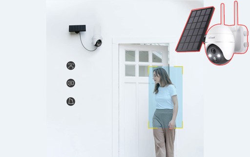 kamerę do nadzoru słonecznego można obracać w poziomie o 355° i w pionie o 120° dzięki zdalnemu sterowaniu kamerą za pośrednictwem aplikacji, można osiągnąć wszystkie kąty wokół kamery. Zewnętrzny nadzór kamer słonecznych ma szeroki kąt widzenia 130 ° i funkcję 4-krotnego zoomu cyfrowego, możesz powiększyć ekran wideo, aby zobaczyć więcej szczegółów.