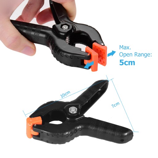 W zestawie 3 szt. Wytrzymałych zacisków do mocowania tła do stojaka.